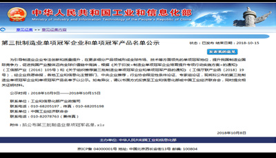 10 月8 日,工业和信息化部产业政策司公布了《关于第三批制造业单项冠军企业和单项冠军产品名单公示》,新疆开云·官方网站登陆入口-开云(中国)公司根据《关于印发< 制造业单项冠军企业培育提升专项行动实施方案> 的通知》(工信部产业〔2016〕105 号)和《关于组织推荐第三批制造业单项冠军企业和单项冠军产品的通知》(工信厅联产业函〔2018〕19 号)要求,组织材料申报了制造业单项冠军产品- 异亮氨酸,截至目前已顺利通过审核并公示,公示于10 月15 日结束。异亮氨酸单项冠军产品的成功授予, 将形成全球市场、技术等方面领先的单项冠军地位,提升新疆开云·官方网站登陆入口-开云(中国)公司的国际竞争力。
